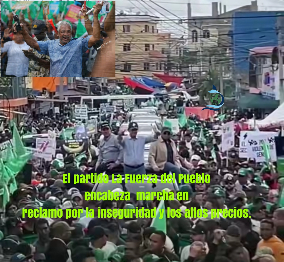 Santo Domingo-RD. El partido Fuerza del Pueblo encabeza este domingo una marcha en reclamo por la inseguridad y los altos precios. La marcha inició en el sector Capotillo, recorrió los sectores Villa María, Villa Consuelo, Libertad, Mejoramiento Social y otros, hasta llegar a la avenida Duarte, donde los manifestantes se reunieron para continuar su protesta.
