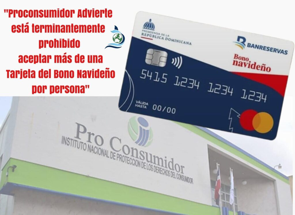 «Pro consumidor Advierte, está terminantemente prohibido aceptar más de una Tarjeta del Bono Navideño, por persona»