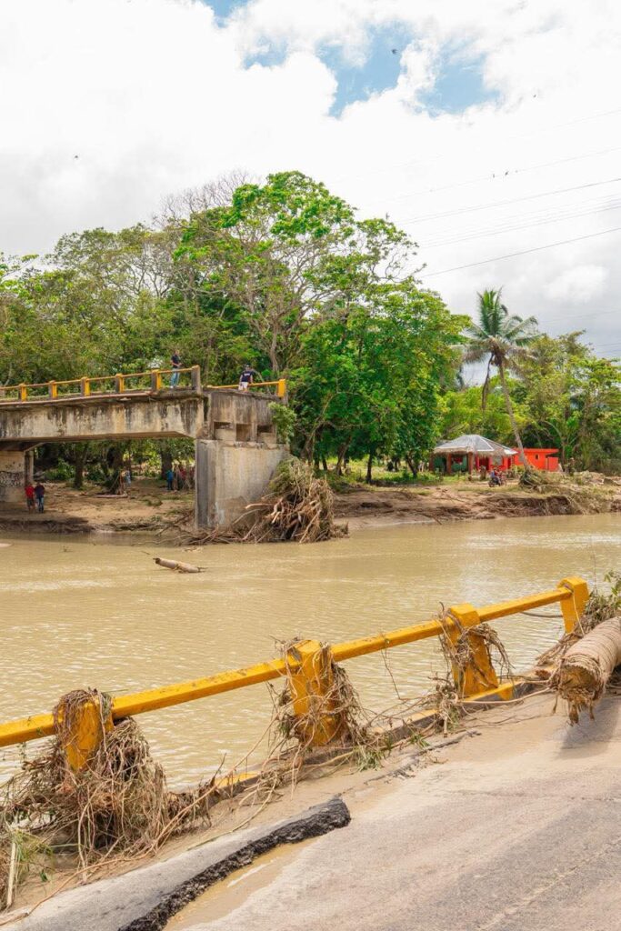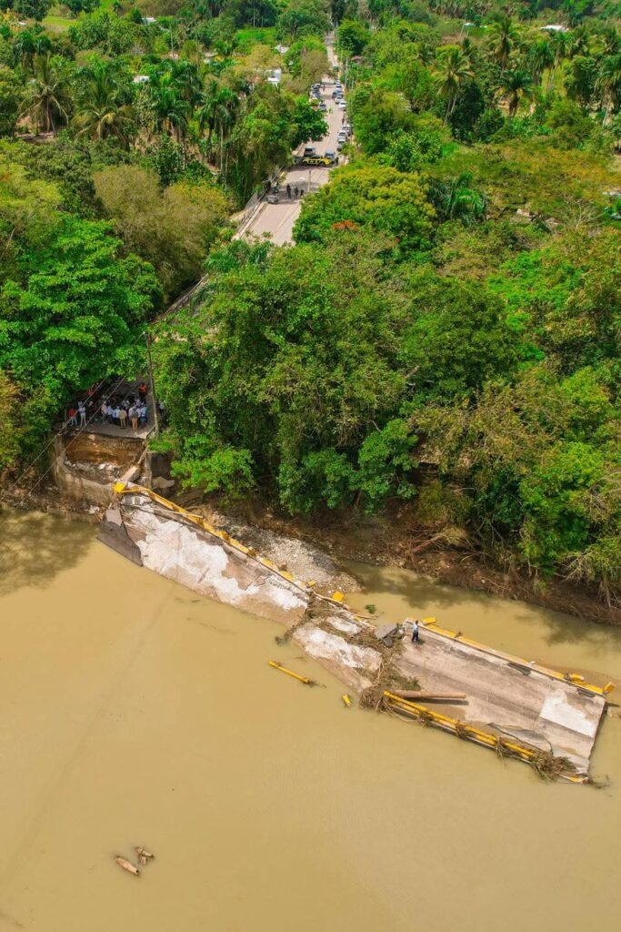 El colapso del puente ocurrió recientemente tras las fuertes crecidas del río Camú, dejando incomunicadas varias comunidades y obligando a una rápida intervención de las autoridades.